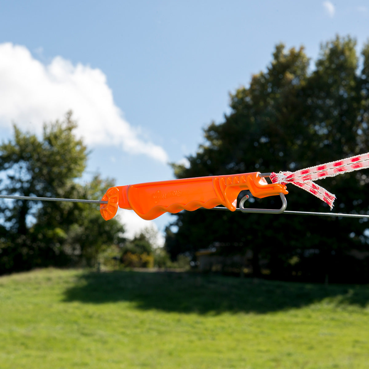 La nueva Manija doble propósito proporciona la flexibilidad para el cerco se manipule desde el carrete o del extremo de la manija.