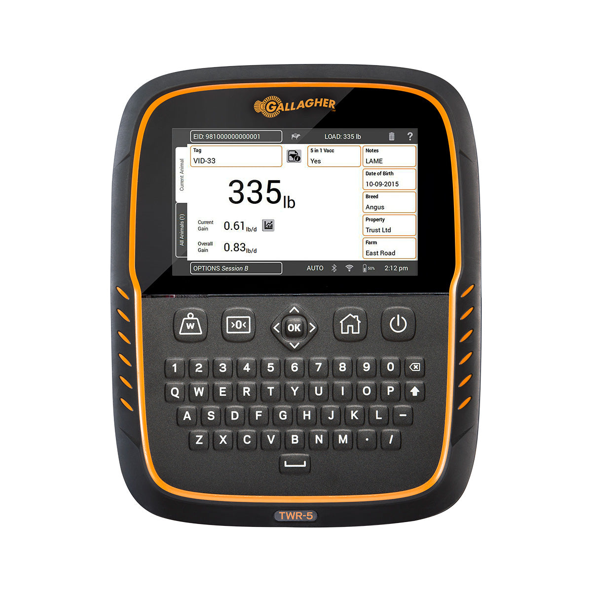 El Gallagher TWR-5 es la próxima generación de la familia de recolectores de datos y monitores de pesaje táctiles, e incluye un lector de identificación electrónica totalmente integrado.