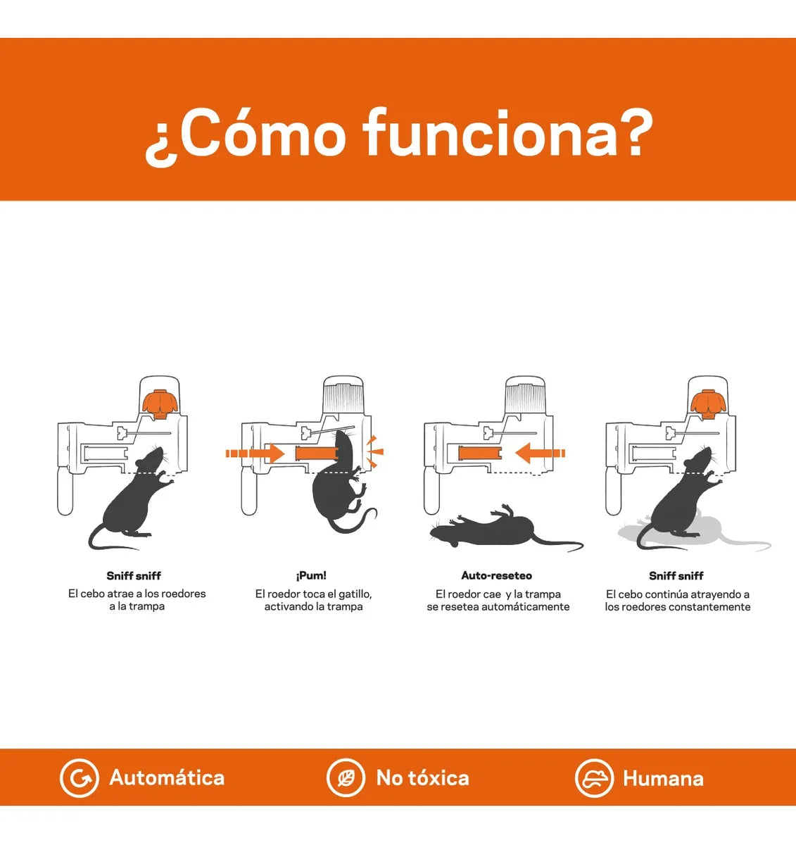 Control automático y a largo plazo de plagas de forma sencilla. El kit Smart Trap tiene todo lo que necesita para controlar las plagas de forma segura y eficaz. La tapa Smart Cap registra cada vez que se elimina una plaga, incluyendo el día, la hora y la temperatura del aire, y actualiza la aplicación a través de Bluetooth cuando visita su trampa para realizar el mantenimiento.