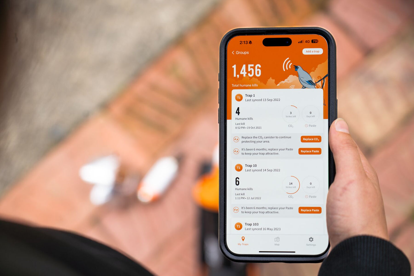 Con la supervisión 24/7, sabrá lo que ha estado haciendo su trampa. El Smart Cap lleva la cuenta de cada plaga que ha eliminado su trampa. Incluso si no ha visto ninguna plaga debajo de su trampa, sabrá cuántas está capturando. La aplicación Goodnature también le avisa cuando necesita reemplazar el cebo y el gas, manteniendo su trampa en buen estado y lista para la acción.